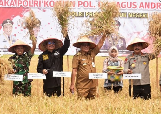 | PENGGALAMAN - Gubernur Kalsel H Sahbirin Noor bersama Wakapolri Komjen Agus Andrianto melakukan panen raya di Desa Penggalaman, Kecamatan Martpura Barat, Kabupaten Banjar, Selasa (03/10/2023). |