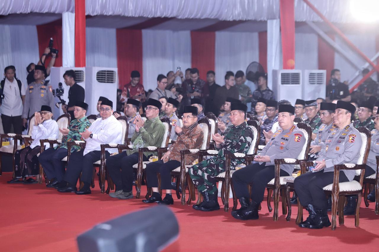 Acara tersebut dihadiri oleh Wakil Presiden ke 10 dan 12 Muhammad Jusuf Kalla, Kapolri Jenderal Listyo Sigit Prabowo dan Panglima TNI Jendral Agus Subiyanto, Ketua Umum Dewan Pimpinan MUI K.H. Anwar Iskandar, serta jajaran pejabat TNIPolri. (jr/fs)