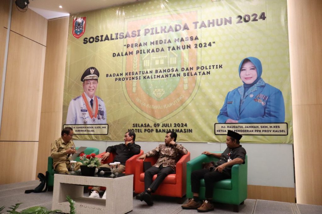 | SERENTAK - Sosialisasi Pilkada Serentak 2024 diselenggarakan Bakesbangpol Kalsel diikuti insan pers.(pemprov kalsel) |